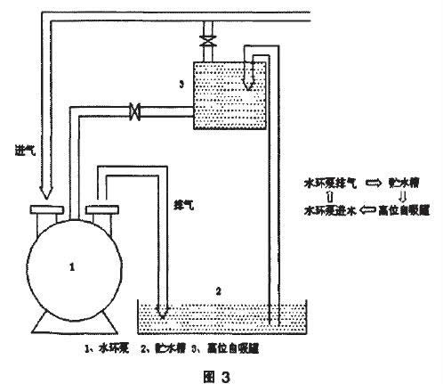 本人根據(jù)以上三點,并針對設(shè)備使用的現(xiàn)狀,提出以下改造措施(如圖3),同時還達到了節(jié)能減排的目的,增加了設(shè)備運行周期,減少了設(shè)備異常損壞。采用這種方式可以有效解決水環(huán)式真空泵水垢問題